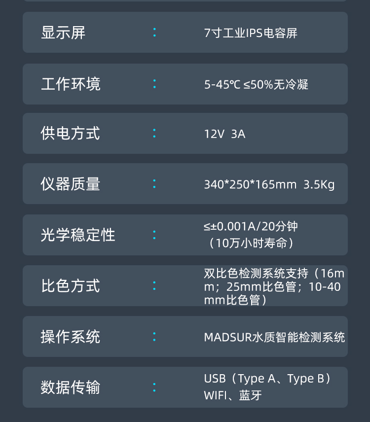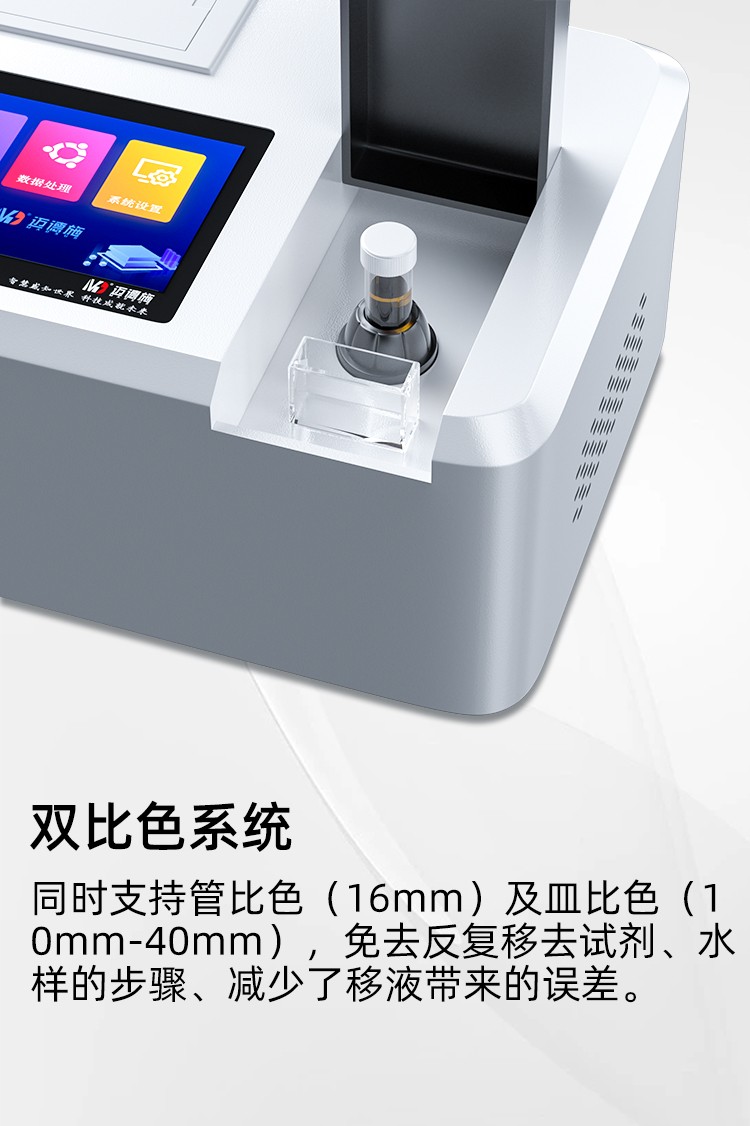 人工智能語音播報提示,可隨意調節音量, 使用更方便更 配備112種預先編程的曲線,曲線數量990條,可濃度直讀,測量結果更精密; 具有數據存儲功能,可存儲90萬組數據,并能自由查看; 10寸彩色液晶顯示觸摸屏,全中文操作模式,更便于操作掌握; 儀器自備校準功能,可根據標準樣品計算, 并存儲曲線,無需手動制作曲線; 配備USB接口傳輸功能,自帶打印機,可打印當前數據及存儲的歷史數據; 采用管比色、皿比色,雙比色系統